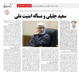 احسان انصاری/سعید جلیلی همواره پایگاه اجتماعی ثابت و مشخصی داشته اما همواره خود را نماینده همه مردم دانسته است. شکست در هر انتخاباتی که وی حضور داشته و پیروزی رقیب اصلی او به خوبی نشان می دهد که جایگاه سعید جلیلی آن چیزی نیست که فکر می کند و بلکه آنچه بیان می کند بیشتر برای رسیدن به قدرت است تا خدمت.اظهارات وی درباره مناظره با حسن روحانی که با یک ادبیات توهین آمیز بیان شده نیز به خوبی خواست وی را برای دیده شدن و به صحنه آمدن نشان می دهد.با این وجود آنچه امروز اهمیت دارد شخص سعید جلیلی نیست و بلکه تفکری است که جلیلی آن را نمایندگی می کند و شاید مسبب اصلی بحران های کنونی کشور است.در واقع همین تفکر بود که بسیاری از فرصت های اصلاح و توسعه را از ایران گرفت و اجازه نداد ایران در مسیری حرکت کند که براساس سند چشم انداز باید در سال جاری به عنوان کشور اول منطقه شناخته می شد.